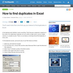 Select any cell inside the recordset. How to highlight unique values in the table. Duplicates in excel can come in many forms. How to find duplicates in excel. The tutorial explains how to search for duplicates in excel. How to remove duplicate data in excel sheets? How to find and highlight duplicate rows in a range in excel? The column a:a stands for the data table you're looking at. How to find and remove duplicates in most of the users who are working on the excel sheet has to face problem during find duplicate values in excel worksheets. How to find duplicates in excel and then remove them (or merge). Excel provides 2 tools for handing this situation and cleaning up your database. First, let's find out how to count the number of occurences in a list. If you seek number of duplicates, create a frequency histogram for each word you find in your sheet.